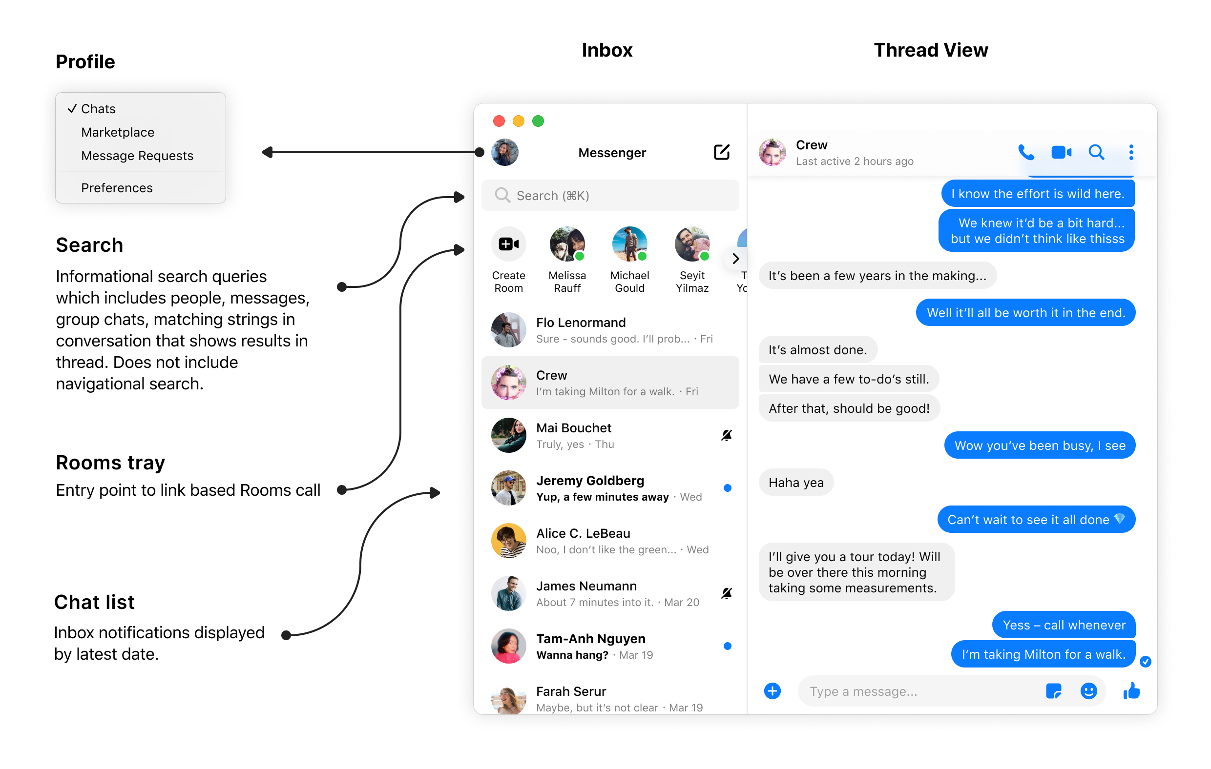 Led the information architecture and navigation redesign to scale community chats on Messenger desktop. Achieved a 38% month-over-month increase in daily active users and expanded usable screen real estate by 40%.