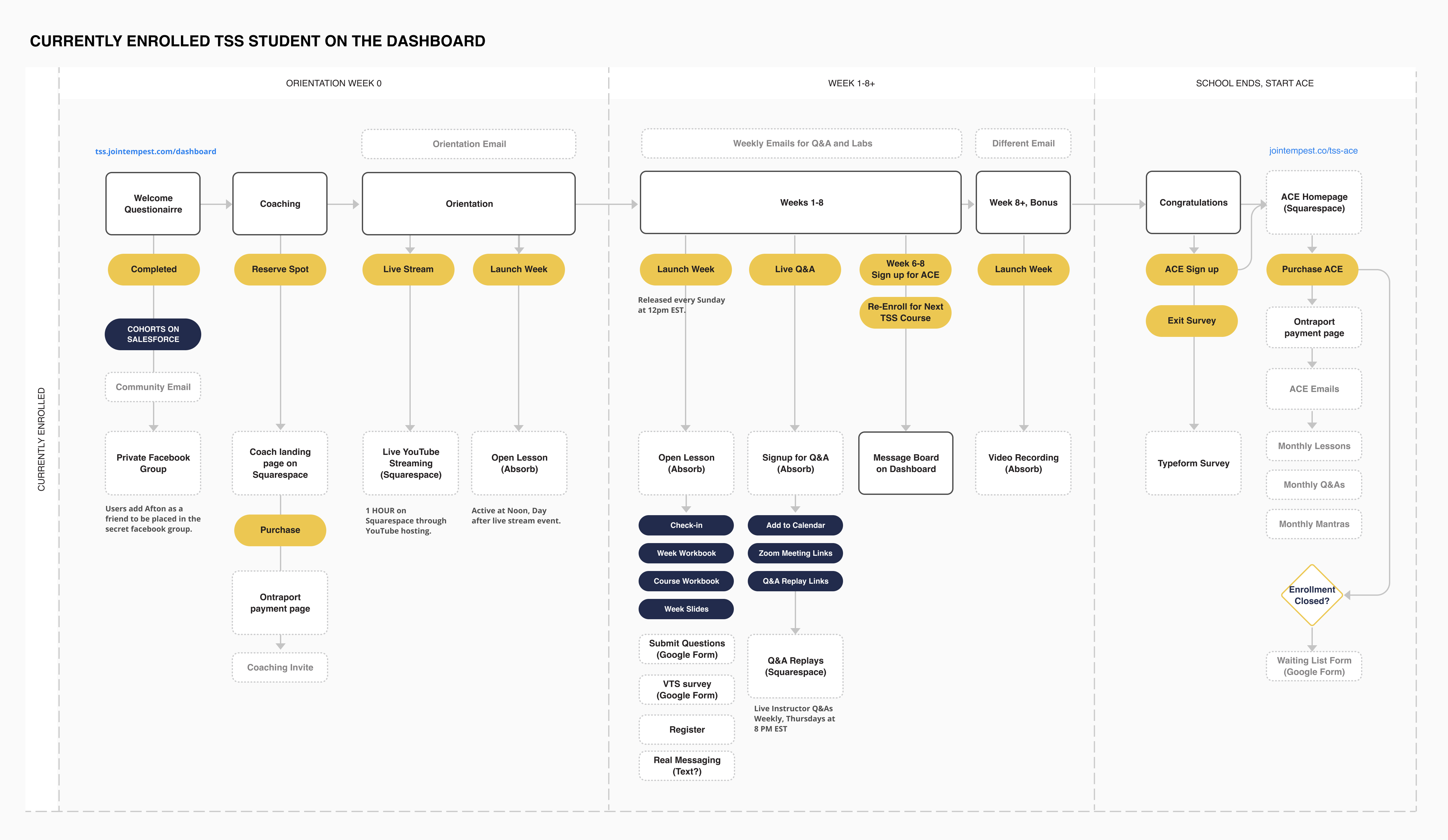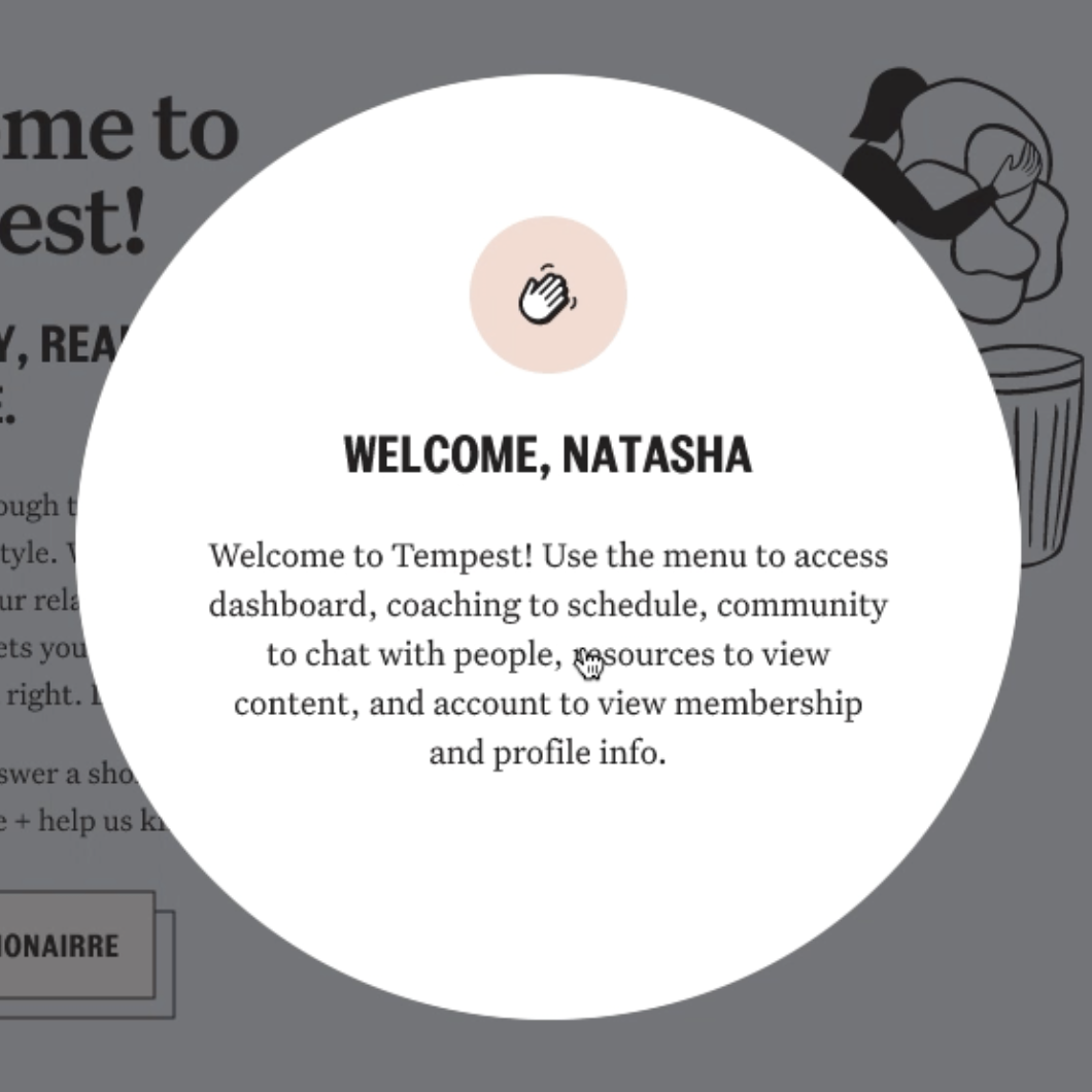I hosted a workshop with the stakeholders and our founder to map out ideal experience of someone who enrolled as a Tempest member and how they would continue beyond the current 8 week offering. We identified current pain points the new program design could address, such as creating a separate experience for alumni members who may have been sober for many years, versus someone who is newly sober in relevant content and community spaces.